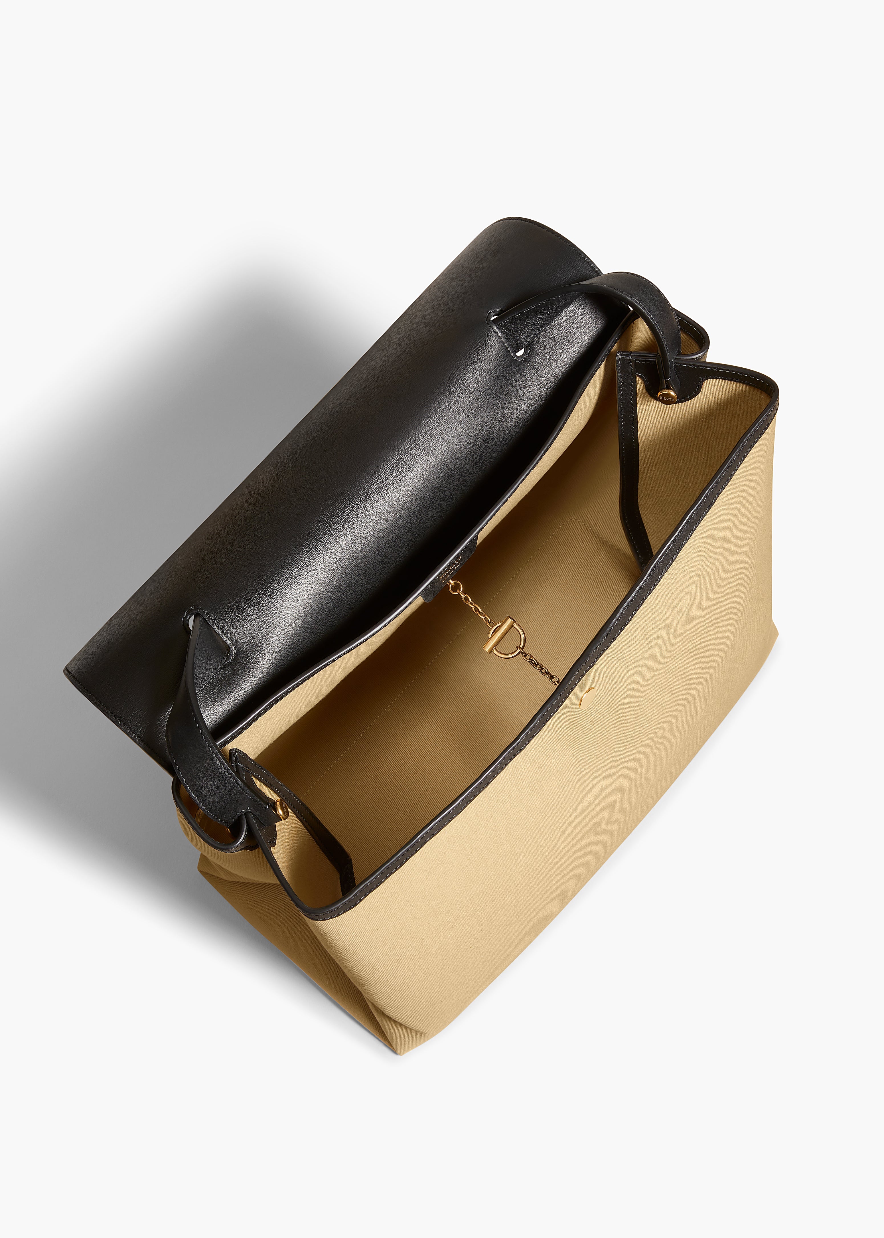 라지 리아 백 블랙 가죽 허니 캔버스