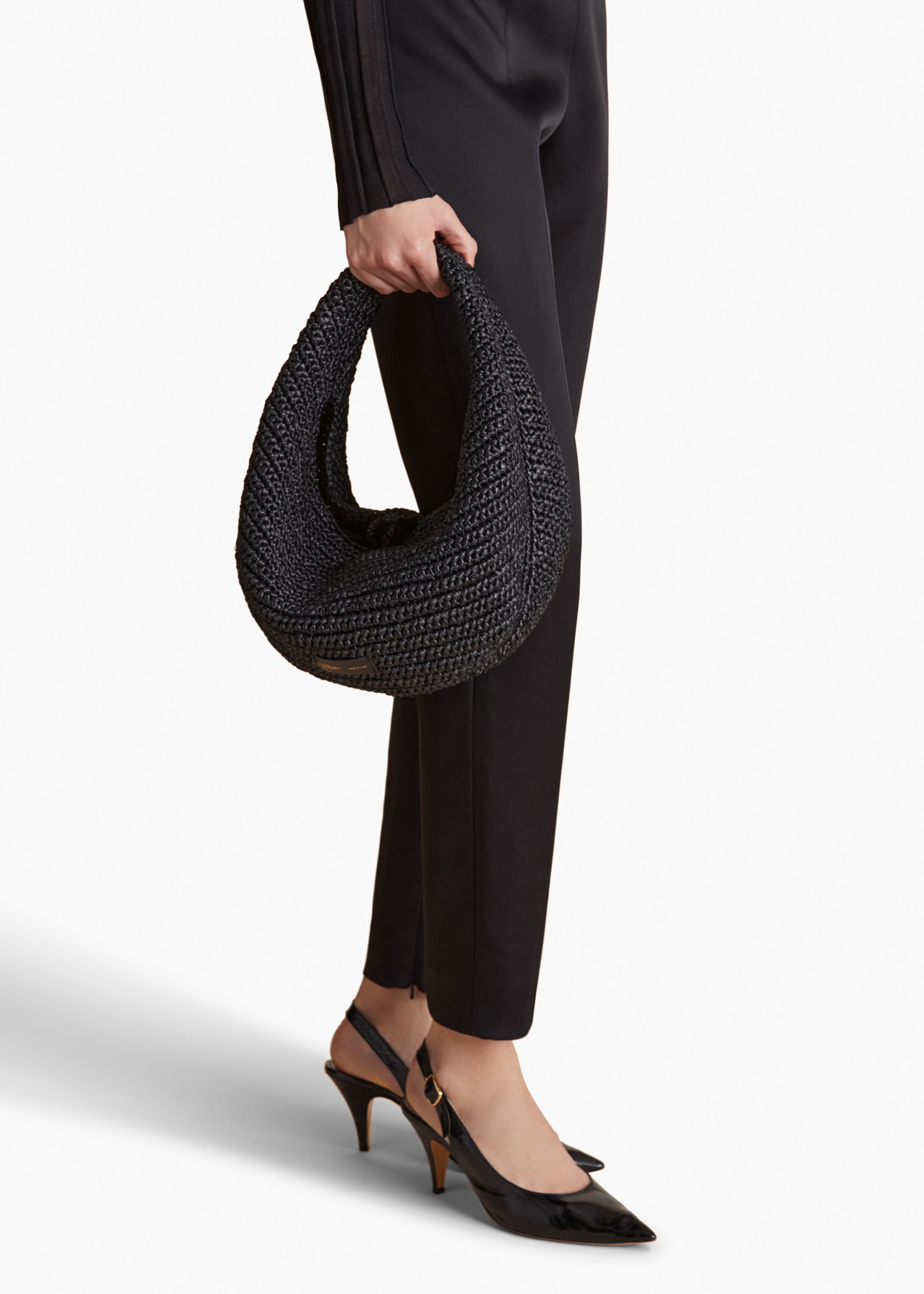 미디엄 올리비아 호보 블랙 라피아